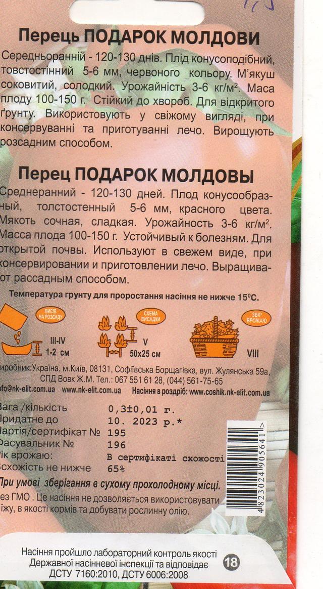 Перець ПОДАРОК МОЛДОВИ 0,3г.